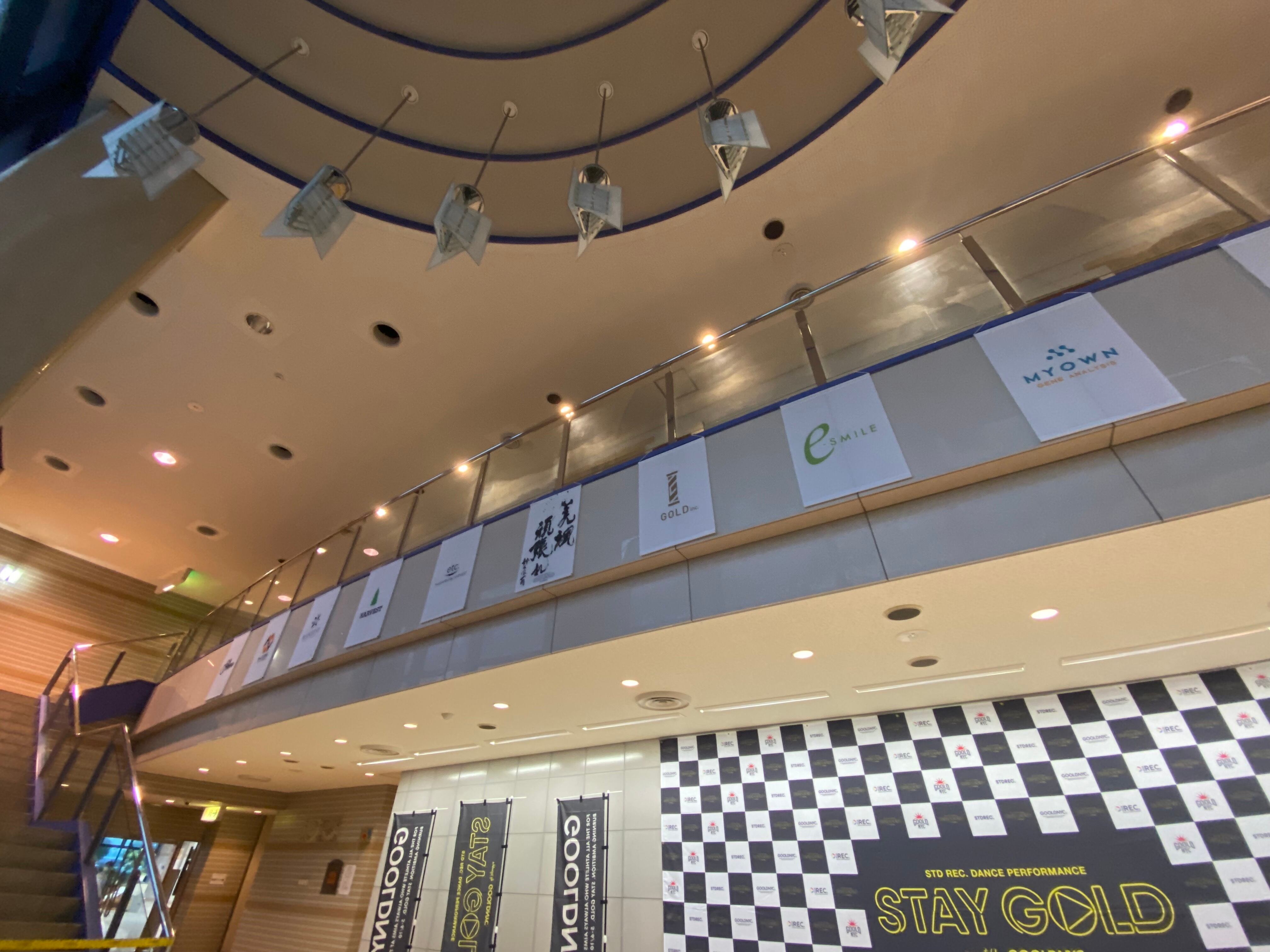 ・会場ロビーにロゴや名前などをプリントしたタペストリーを掲載(画像参照)